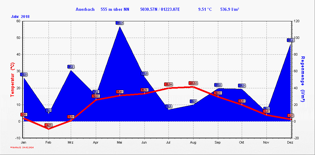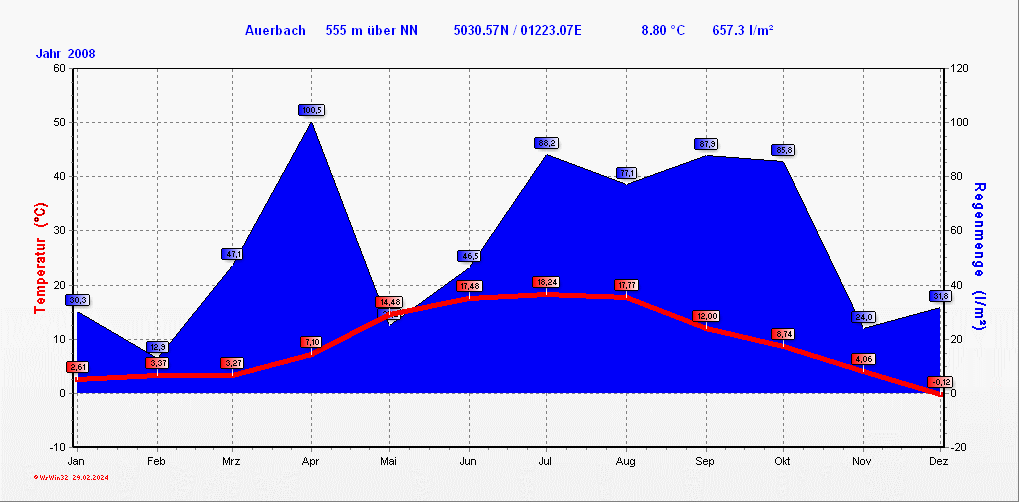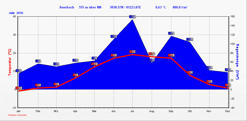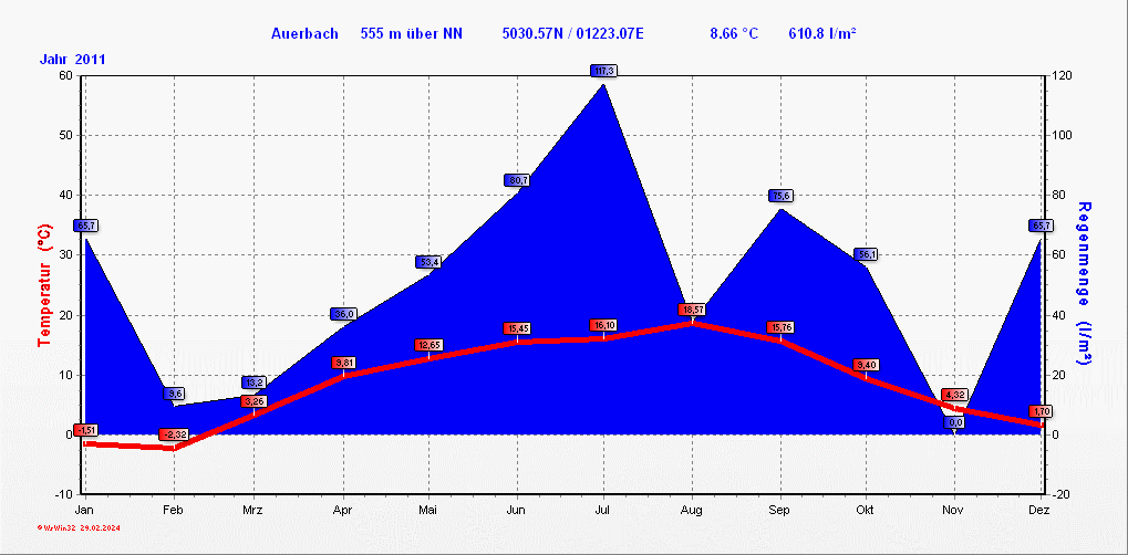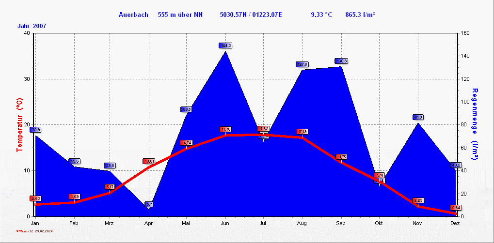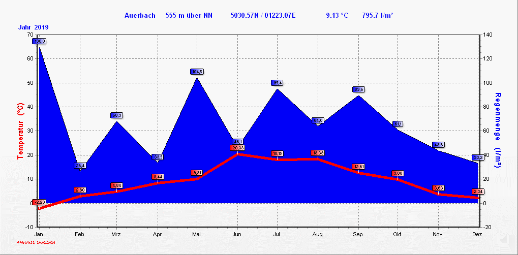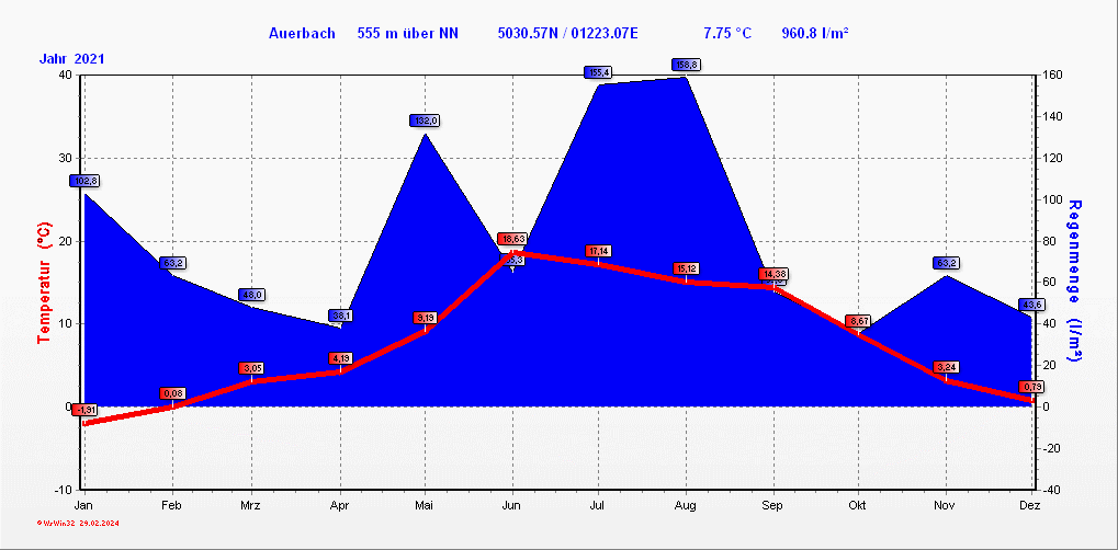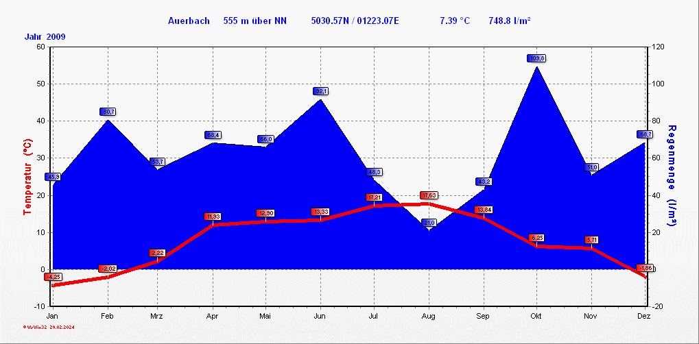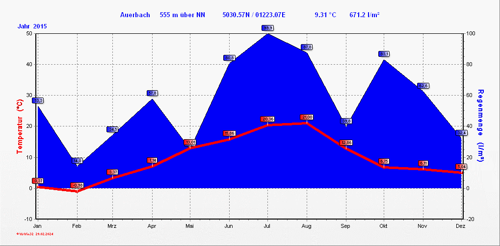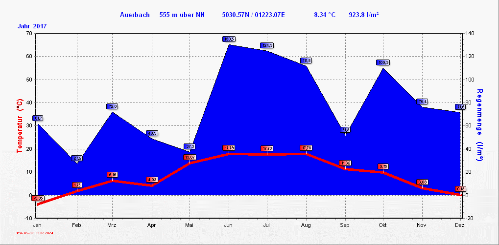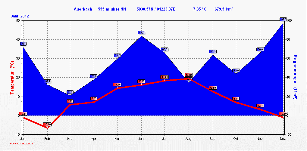 Klimastatistik in Auerbach / Vogtland