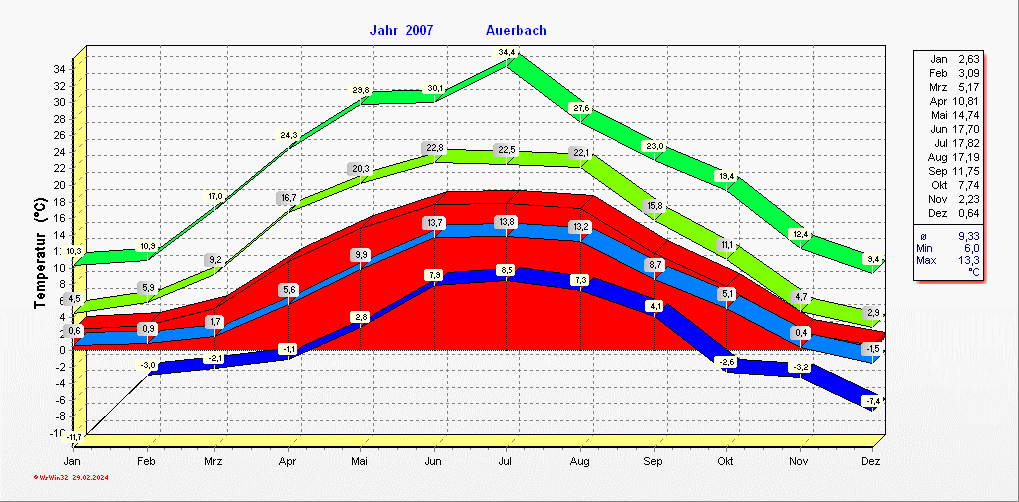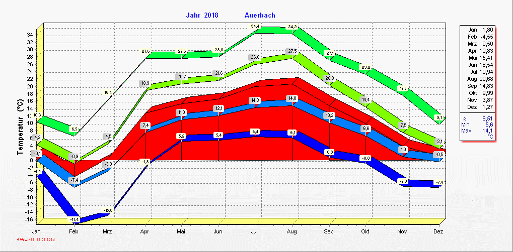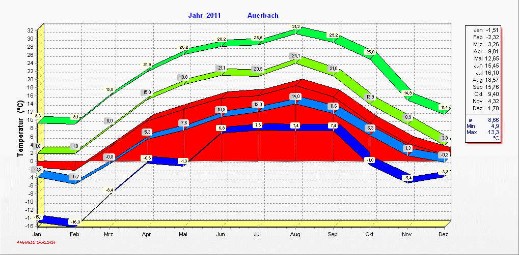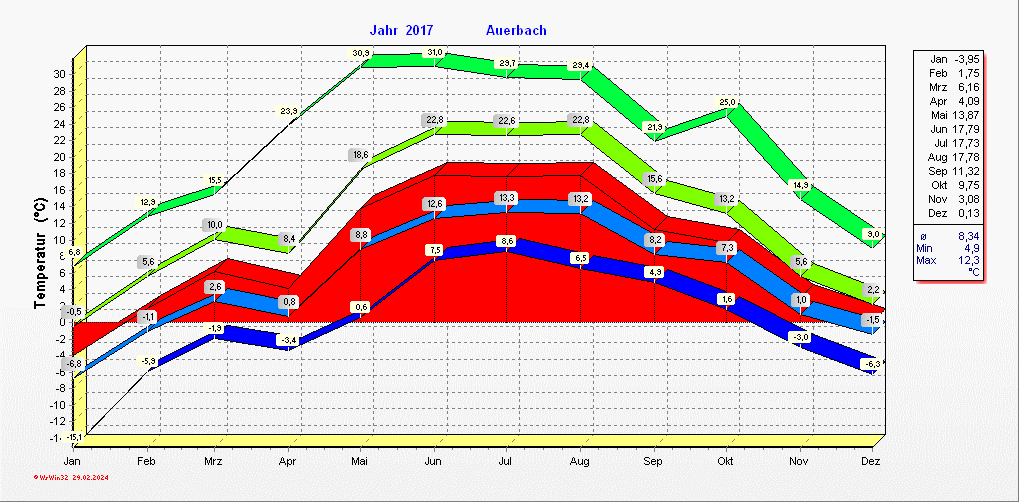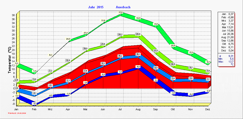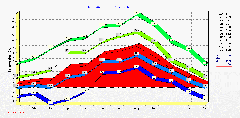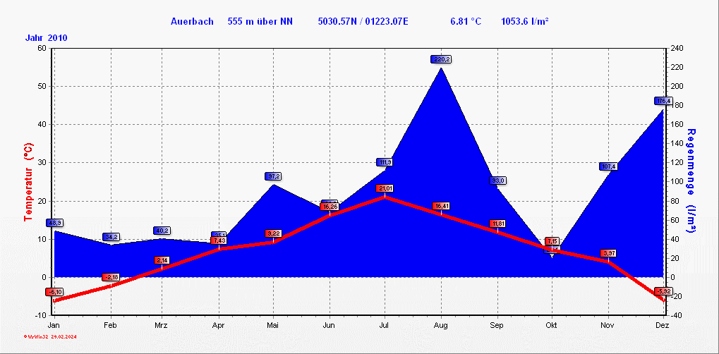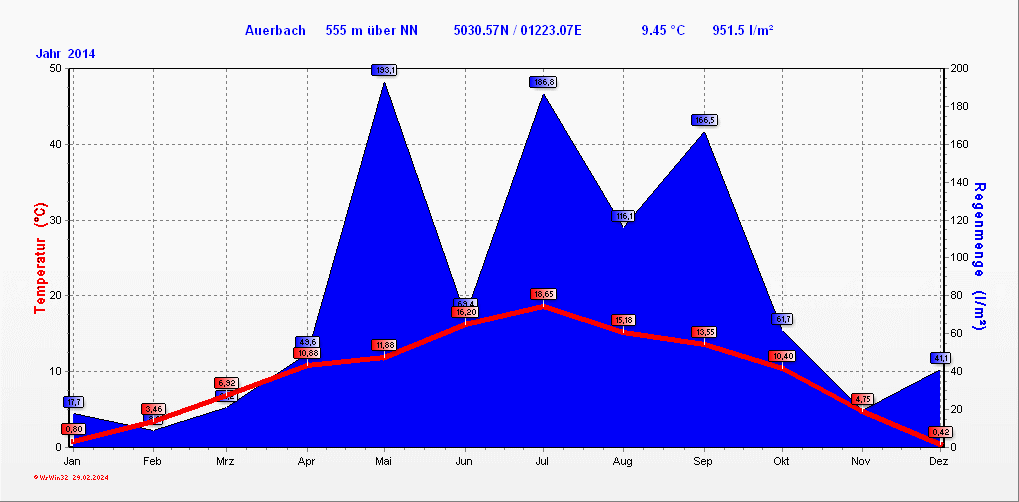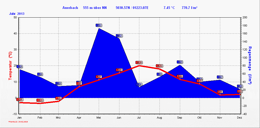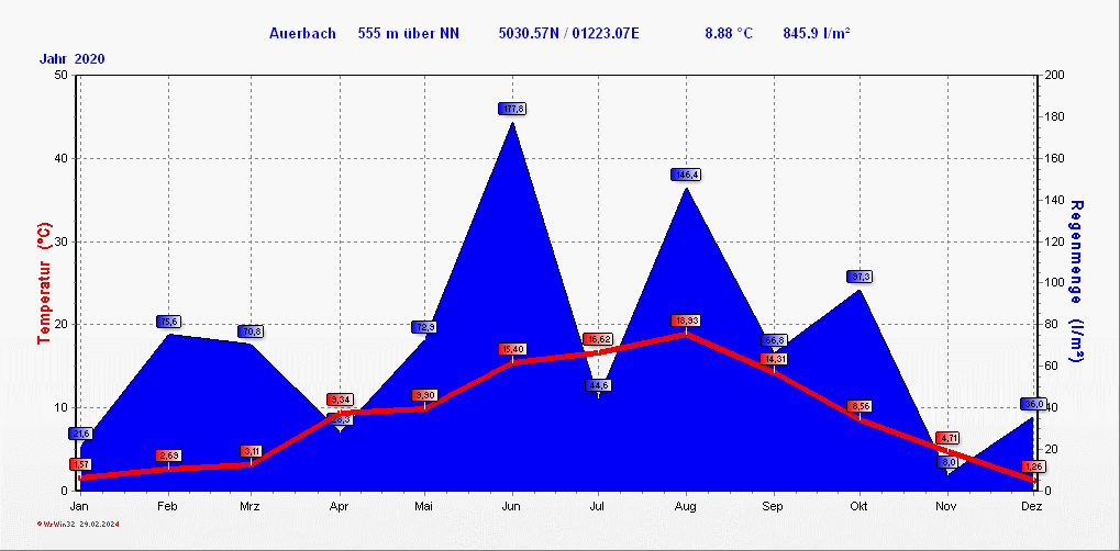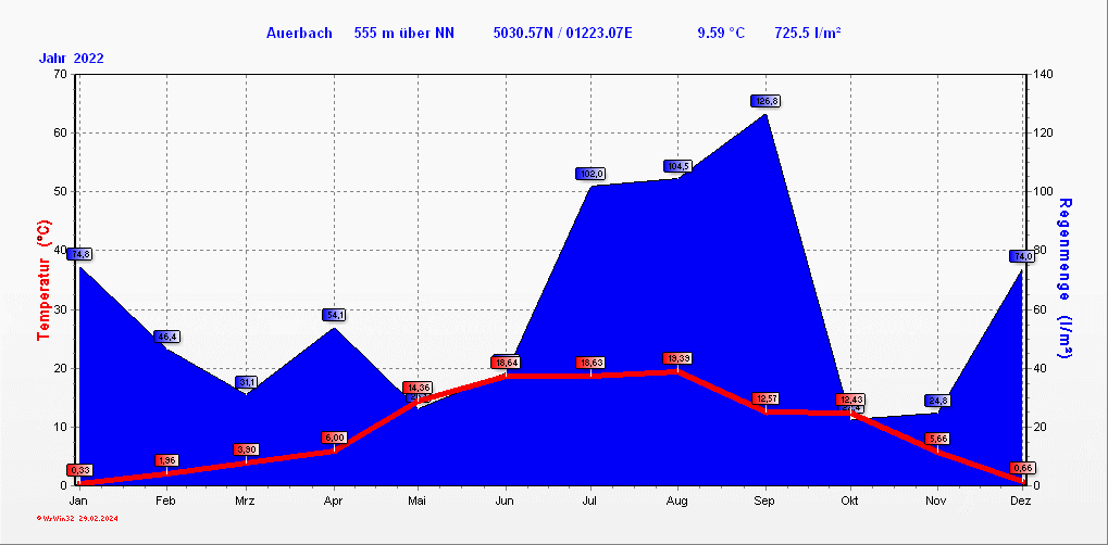 Klimastatistik in Auerbach / Vogtland
