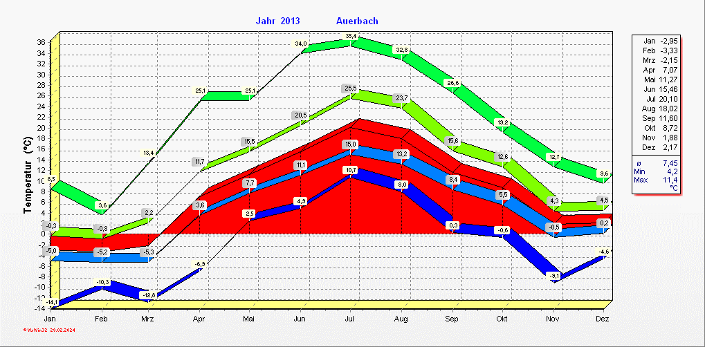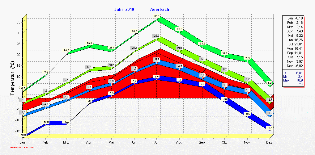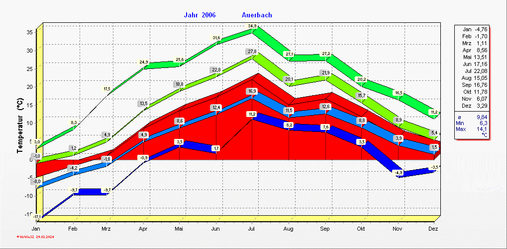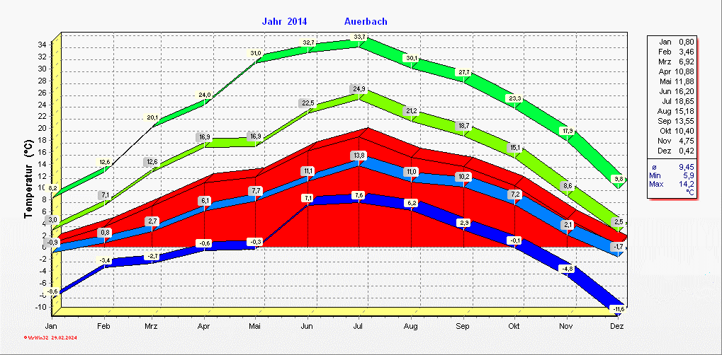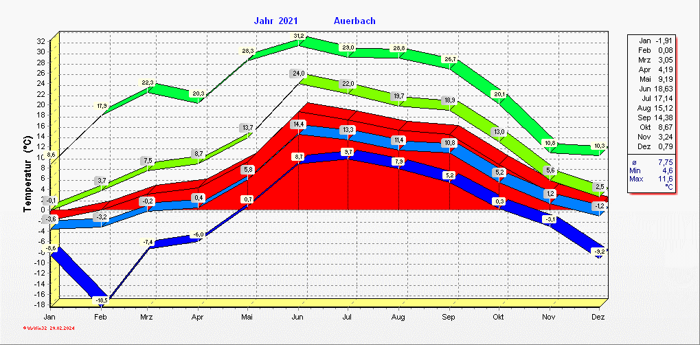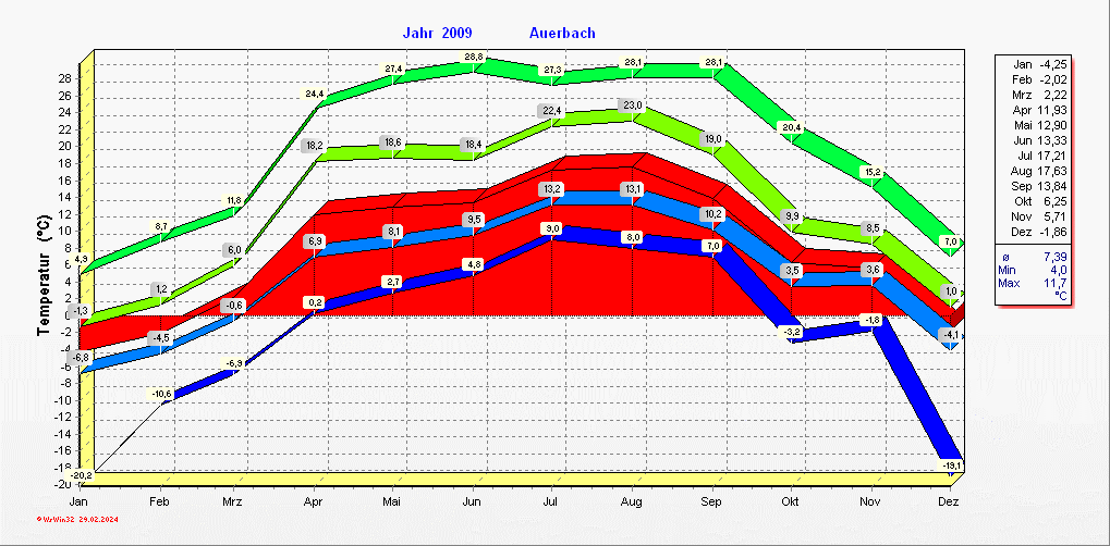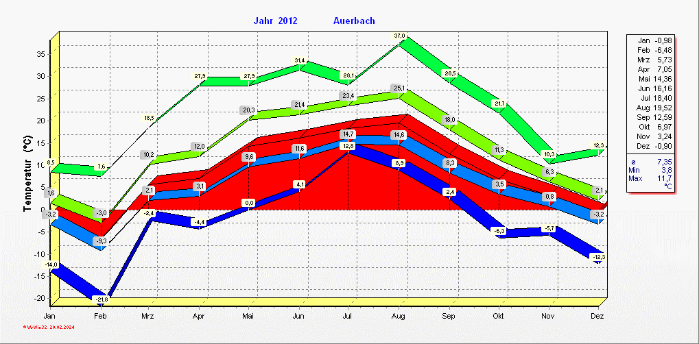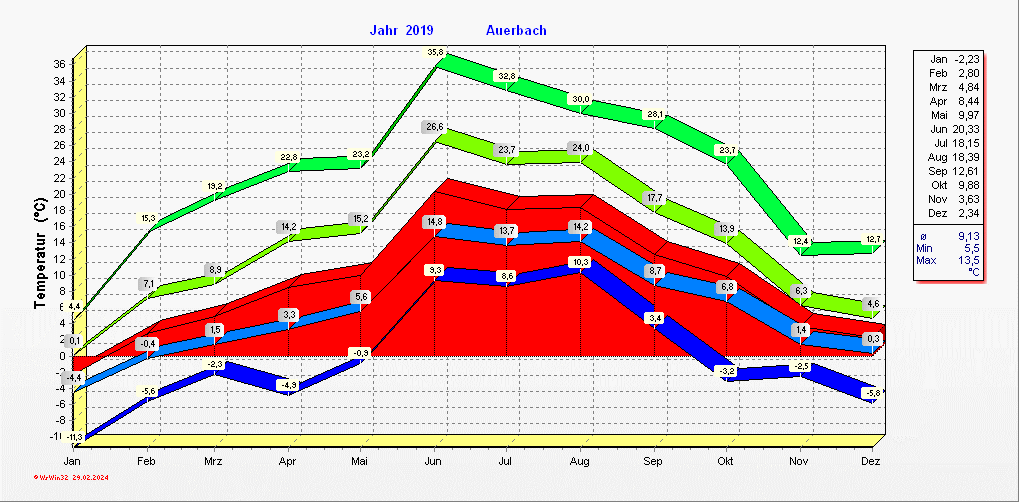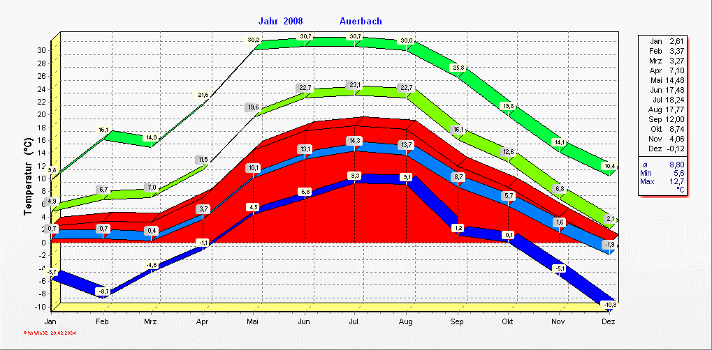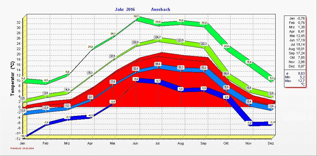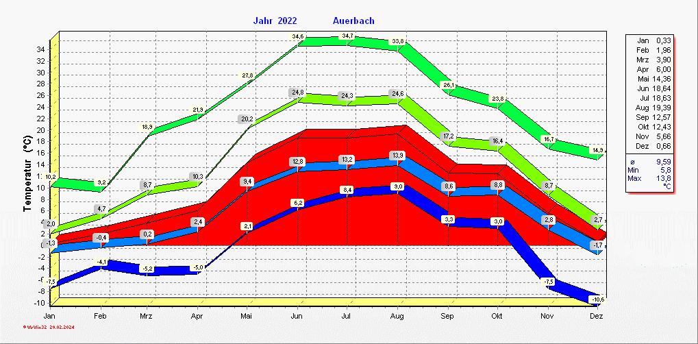 Klimastatistik in Auerbach / Vogtland